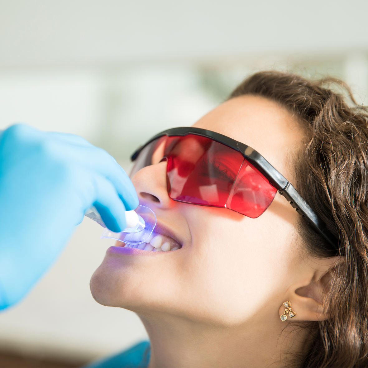 Zahnaufhellungsgel? Das Gel enthält ein aktives Zahnaufhellungsmittel, dass durch ein spezielles LED-Licht aktiviert wird. Das Bleichmittel dringt in die Zahnoberfläche ein und reagiert mit dem verfärbten Zahnschmelz. In der Zahnsubstanz kommt es zu einer Oxidation, die Verfärbungen werden durch die freien Sauerstoffradikale entfärbt. Dabei wird das Zahnfleisch und der Zahnschmelz nicht angegriffen. Die Behandlung ist zu 100% kosmetisch.